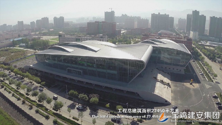 Baoji Swimming and Diving Hall is the key project item of People's Government of Baoji City, and it is the large-scale public facilities integrated with games and sports fitness business facilities. Located within Baoji University of Arts and Sciences of High-tech District, Baoji City, the project is 171.45m long from east to west, and is 123.4m wide from south to north. With one floor of the main body, five on the ground locally, and one underground, the total building height is of 28.85m, and the total construction area is of ??26,947.86 m.